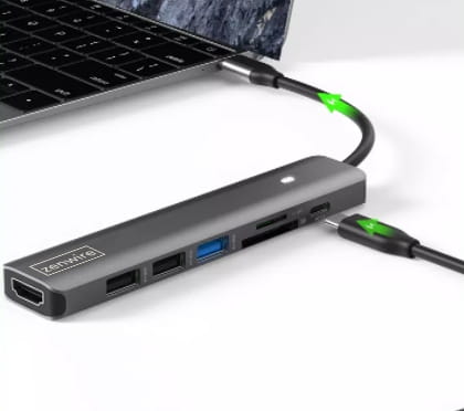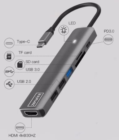 ADAPTATOR HUB USB-C 7in1 HDMI 4K USB 3.0 SD PD M1 LED Zenwire