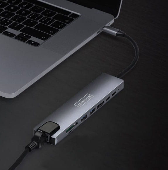 ADAPTATOR HUB USB-C 9 ÎN 1 ZENWIRE CU PORTURI: HDMI 4K, 2X USB 3.0, SD ȘI MICRO SD, FAST ETHERNET, POWER DELIVERY 3.0