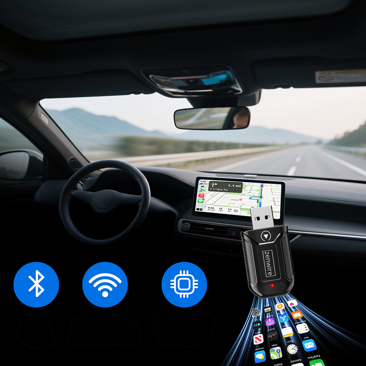 ✅ Transformă CarPlay/Android Auto cu fir într-o soluție complet wireless! Adaptorul Zenwire® M30 îți permite să folosești CarPlay și Android Auto fără cabluri.