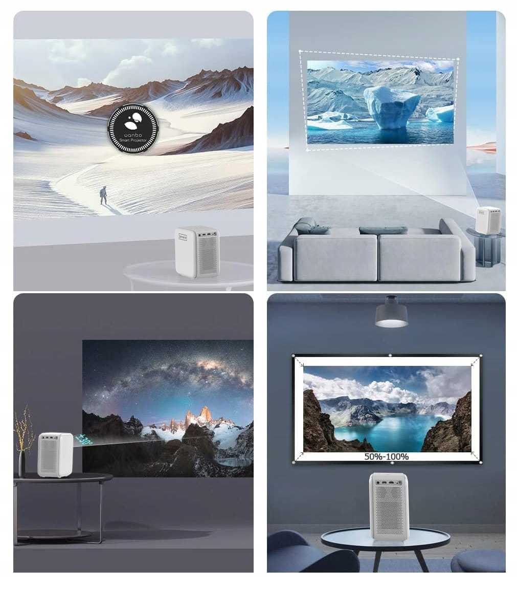 ✅ Confort de utilizare și reglabilitate nelimitată -Focalizare automată a imaginii (Autofocus), Corecție verticală automată (Autokeystone), Funcția ZOOM capacitatea de a reduce imaginea pentru a se potrivi cu peretele, Proiectorul poate proiecta o imagine dreaptă în timp ce se află chiar și lateral față de perete(Proiecție laterală), Funcția 360 - Capacitate de rotație la 360 de grade.