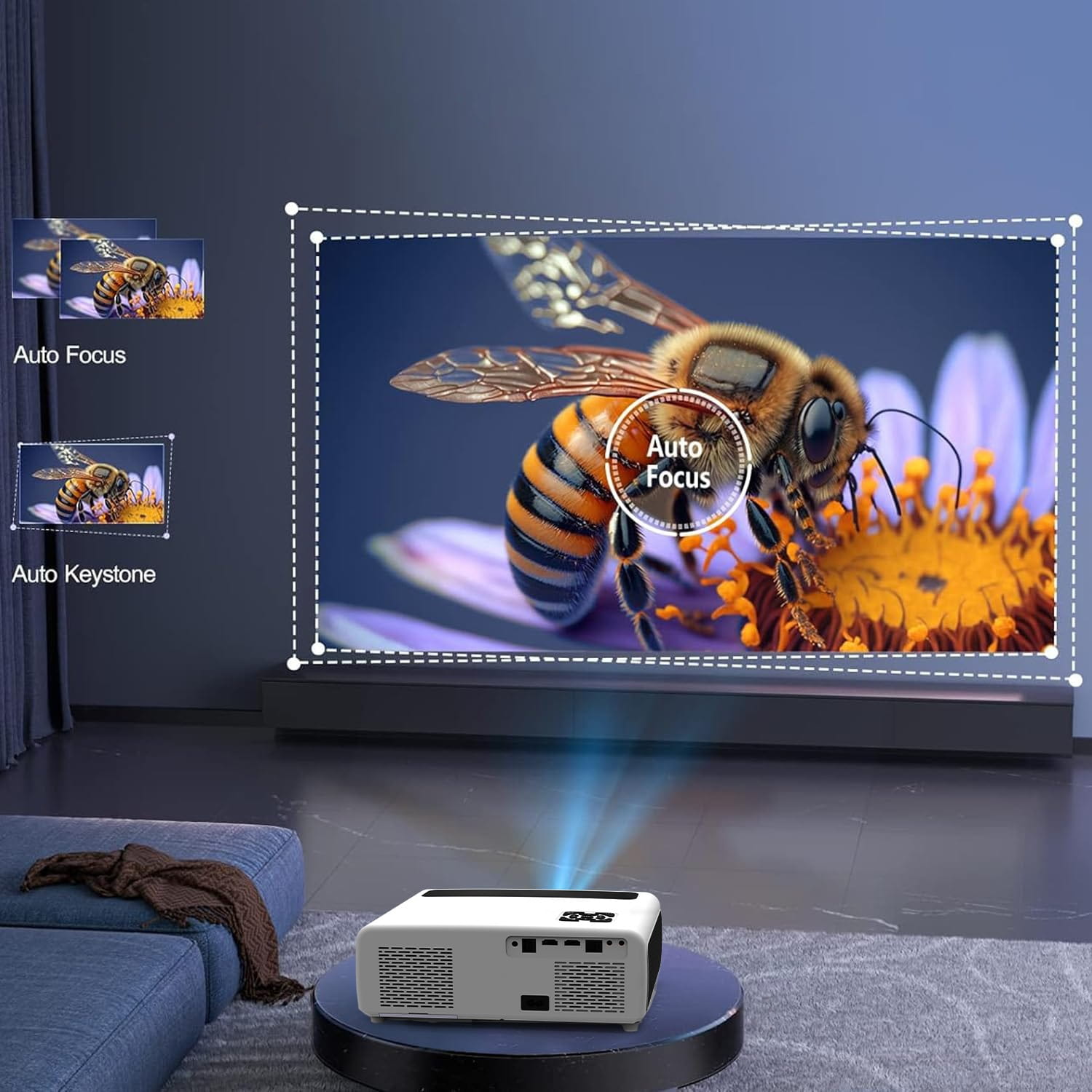 - AutoFocus - Proiectorul va ajusta automat focalizarea imaginii în câteva secunde. Nu trebuie să reglați singur focalizarea cu un cadran, aceasta va fi ajustată complet automat!