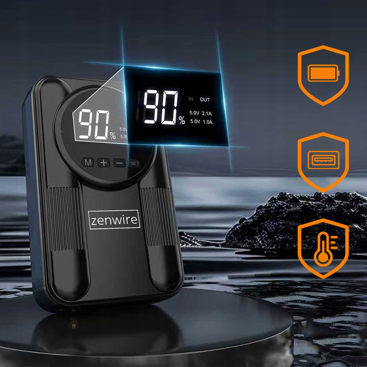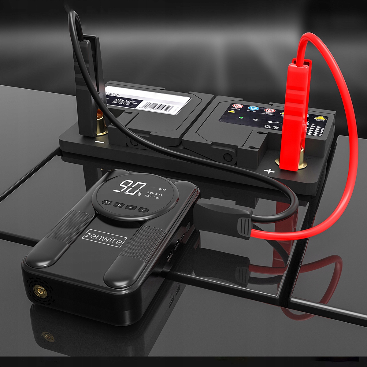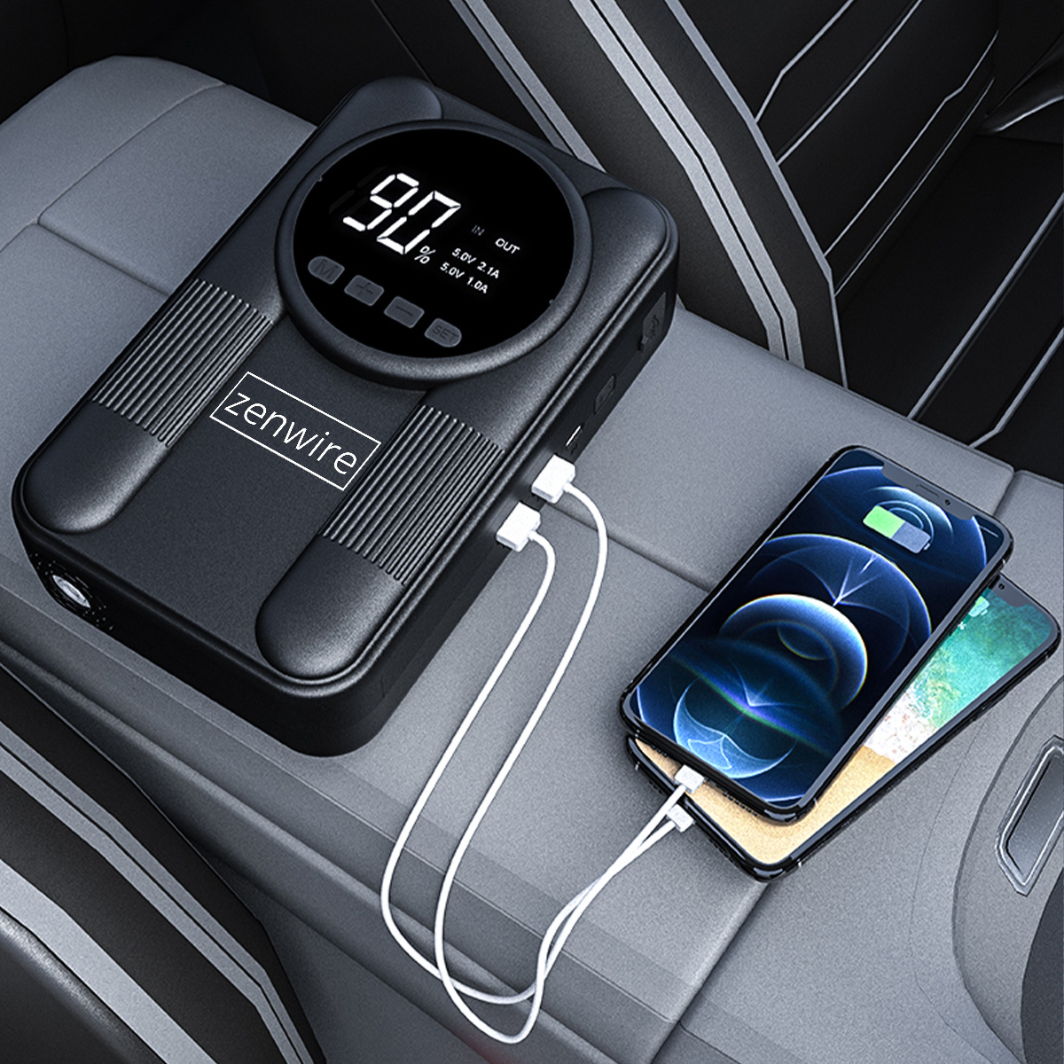 ✅ Jump Starter Zenwire CYD14 12000 mAh + compresor + powerbank + lanternă – caracteristici cheie: