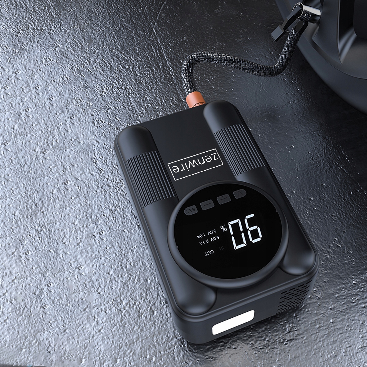 - Zenwire CYD14 dispune de un compresor eficient cu o presiune maximă de 150 PSI, care permite umflarea rapidă a anvelopelor auto, de motocicletă, de bicicletă și a diverselor accesorii precum mingi, saltele de apă și altele.
