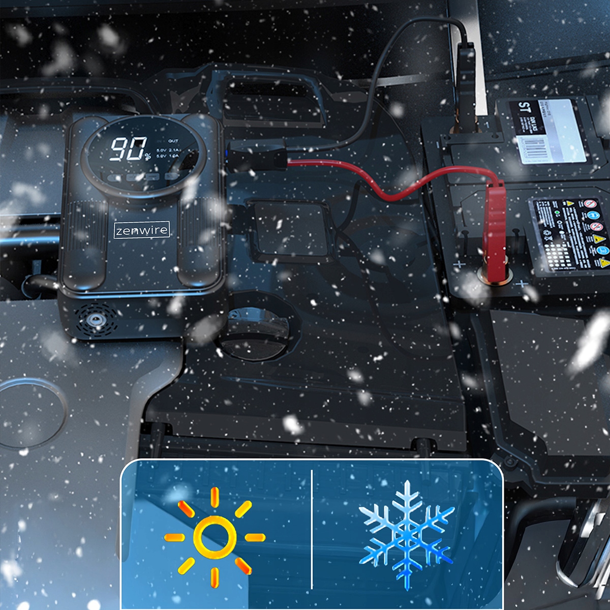 Jump starter-ul Zenwire CYD14 a fost proiectat pentru a porni fără probleme o gamă largă de vehicule echipate cu baterii de 12V.