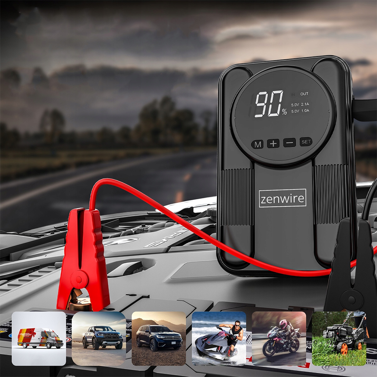 Datorită curentului de pornire de 12V (maxim 2000A) și capacității de 12000 mAh la 3,7V (echivalent cu 36000 mAh la 1,2V), Zenwire CYD14 este potrivit pentru autoturisme, vehicule de livrare, motociclete, scutere, ATV-uri, bărci, echipamente de grădinărit și oriunde unde pornirea clasică este imposibilă din cauza unei baterii descărcate.