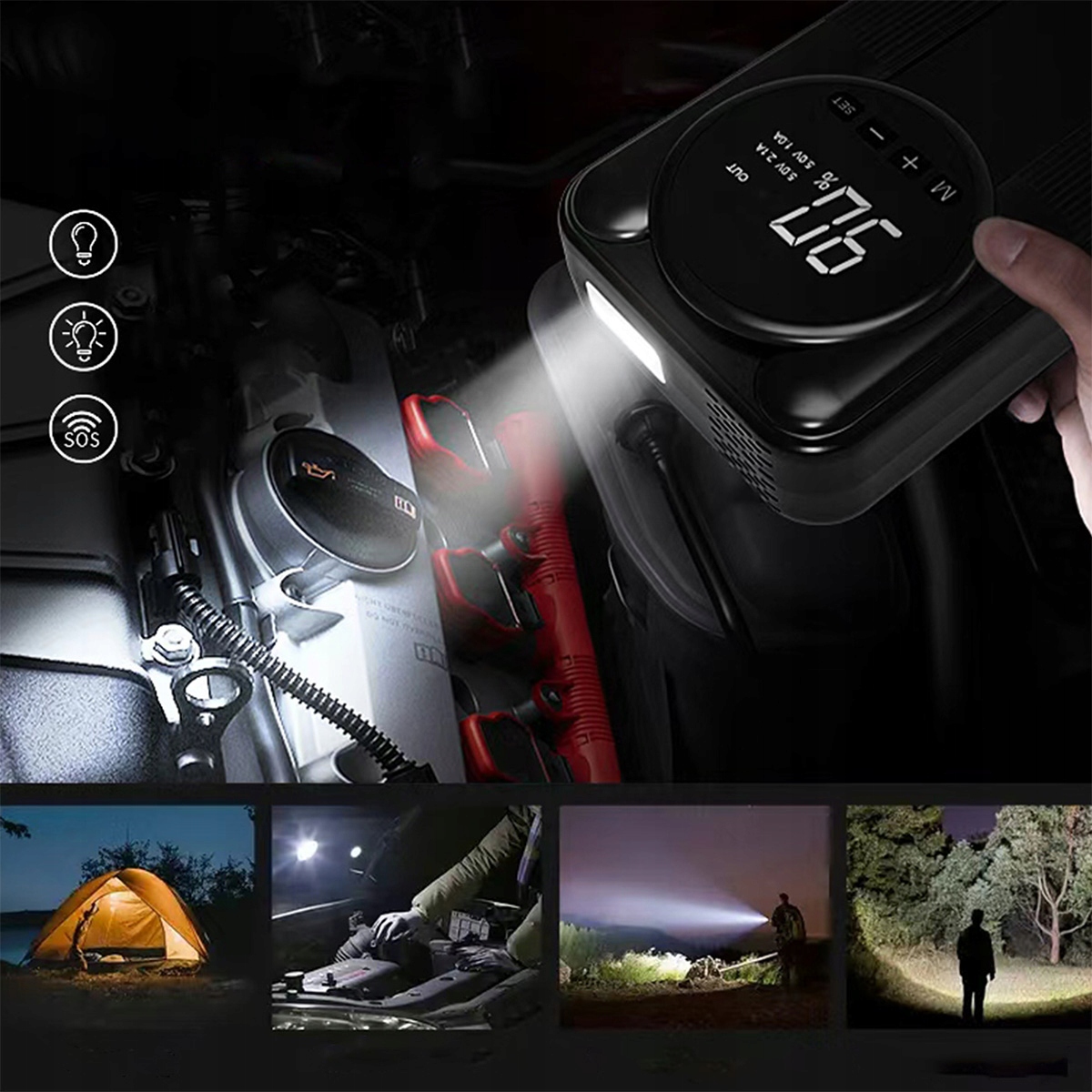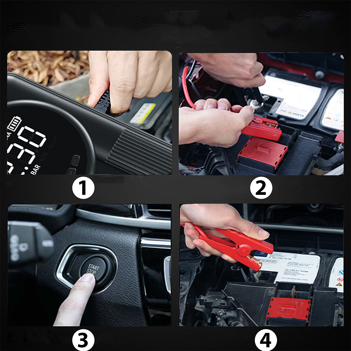 Puteți folosi jump starter-ul în garaj, pe marginea drumului, în timpul călătoriilor sau în condiții de teren — designul compact permite utilizarea confortabilă a dispozitivului în orice situație de urgență.